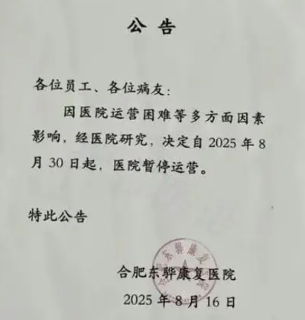 ❌合肥东骅康复医院因触碰政策红线倒下,这家拥有380张床位的二级医院,获批医保定点后竟通过挂床住院、套取DRG费用违规获利,被查处后失去医保资格,收入断崖式下滑,开业不到四年便宣告停运。