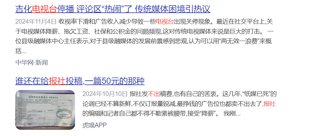传统媒体行业。随着新媒体崛起,传统媒体受众流失、广告营收断崖式下滑。不少地方报社、电视台入不敷出,开始缩减开支,福利取消、薪资下调。