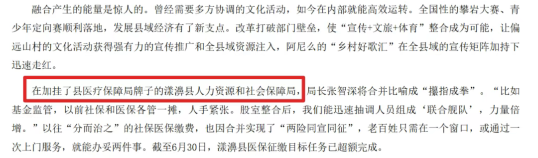 ✅江西省抚州市资溪县:撤销县医保局党组,将其并入县人社局党组,同步精简机构和职数,在减轻财政供养压力的同时,实现了医保与社保业务的协同推进。