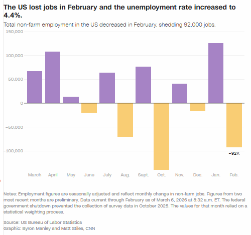 2026年3月7日,《华尔街日报》报道,美国单月就蒸发了9.2万个岗位,失业率一下子涨到了4.4%;再看我们身边,16-24岁的城镇青年失业率,已经高达16.5%。