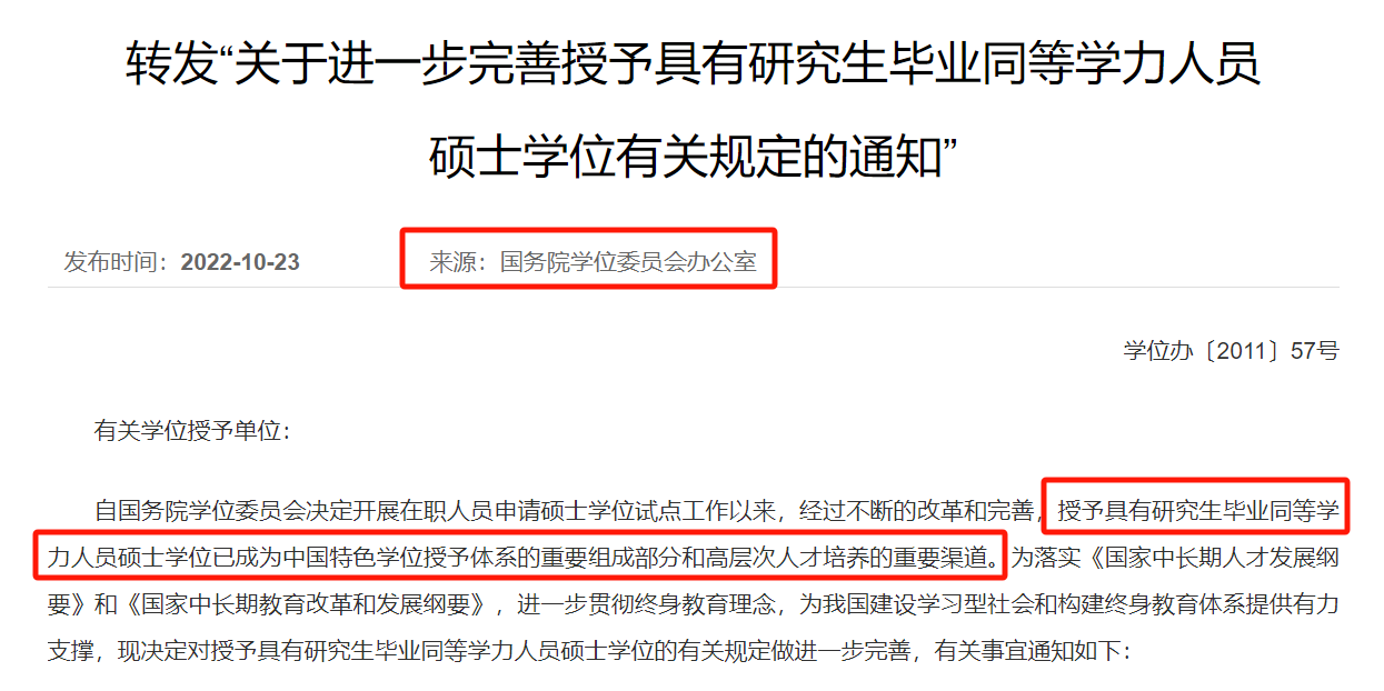早在1998年,国务院学位委员会就正式授权开展同等学力申硕工作,至今已有27年了。当时明确指出:具有研究生毕业同等学力,学术水平或专门技术水平已达到学位授予标准的人员,均可向有关学位授予单位申请硕士、博士学位。