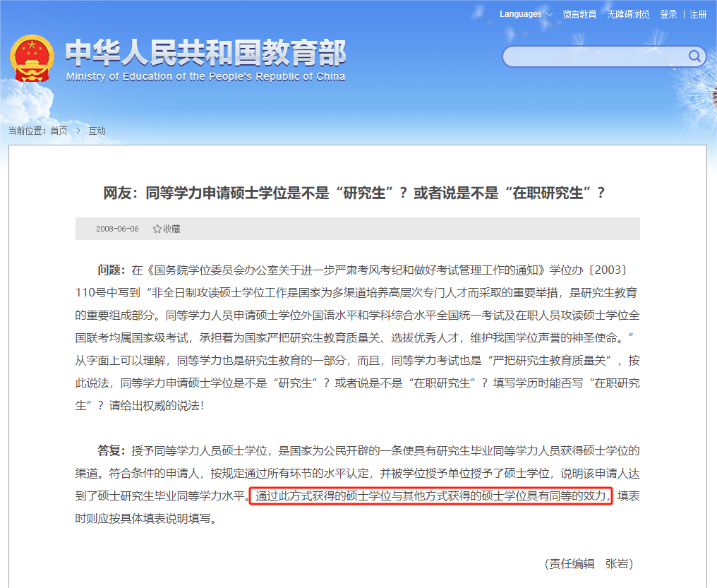 同等学力申硕所获的硕士学位证书,与全日制硕士研究生学位证书具有同等法律效力,在学位网可查,受国家和社会认可。无论是评职称、晋升职务、考公考研,还是出国留学、读博深造,都能发挥重要作用。