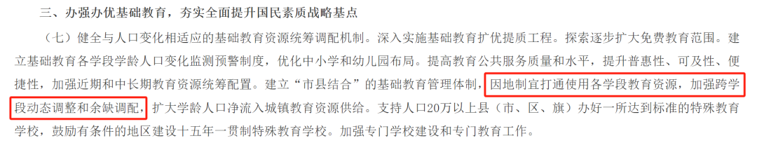 如何适配人口变化,优化教育资源,已成为当下教育界的核心课题。《教育强国建设规划纲要(2024-2035年)》提出:要因地制宜打通各学段教育资源,加强跨学段动态调整与余缺调配。