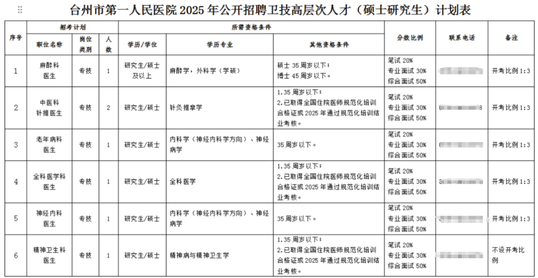 以医生岗位为例,台州市第一人民医院2025年卫技人才招聘公告显示:计划招聘的35名卫技高层次人才均要求硕士学位,报名需通过严格的专业笔试与两轮面试筛选才行,仅博士可免笔试直接进入面试环节。