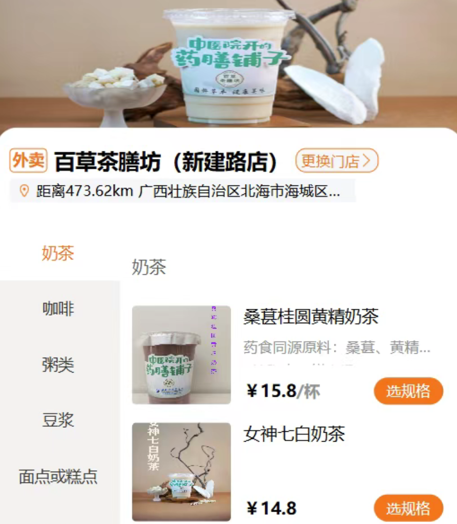 北海市中医医院开设的百草茶膳坊,推出药膳奶茶、咖啡、面点等产品,凭借健康属性与专业背书,收获了各年龄段消费者的青睐。