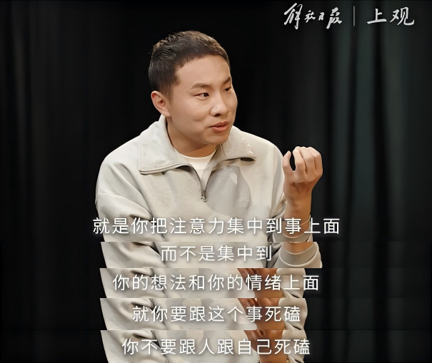 他说,比赛的时候压力也很大,身边的同辈都很优秀,难免会有对比,但他从不会让焦虑左右自己。最有效的办法,就是把注意力集中到事情本身,而非那些杂乱的想法和负面情绪里。比起纠结“别人比我强多少”,他更在意“我能不能把这件事做好”。